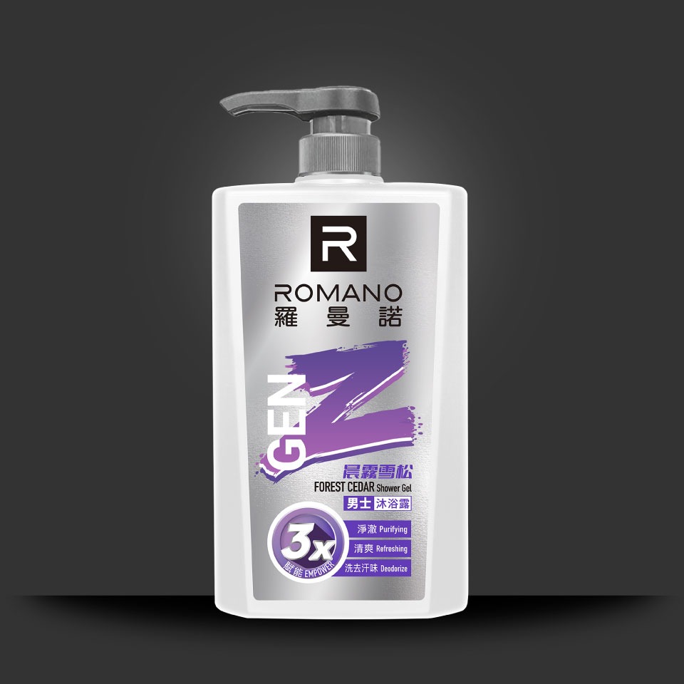 羅曼諾年輕系列男士沐浴露-晨霧雪松蘊含玻尿酸鹽、庫拉索蘆薈葉提取物及大葉海藻提取物,使沐浴露可以達到淨澈、清爽及洗除汗味。