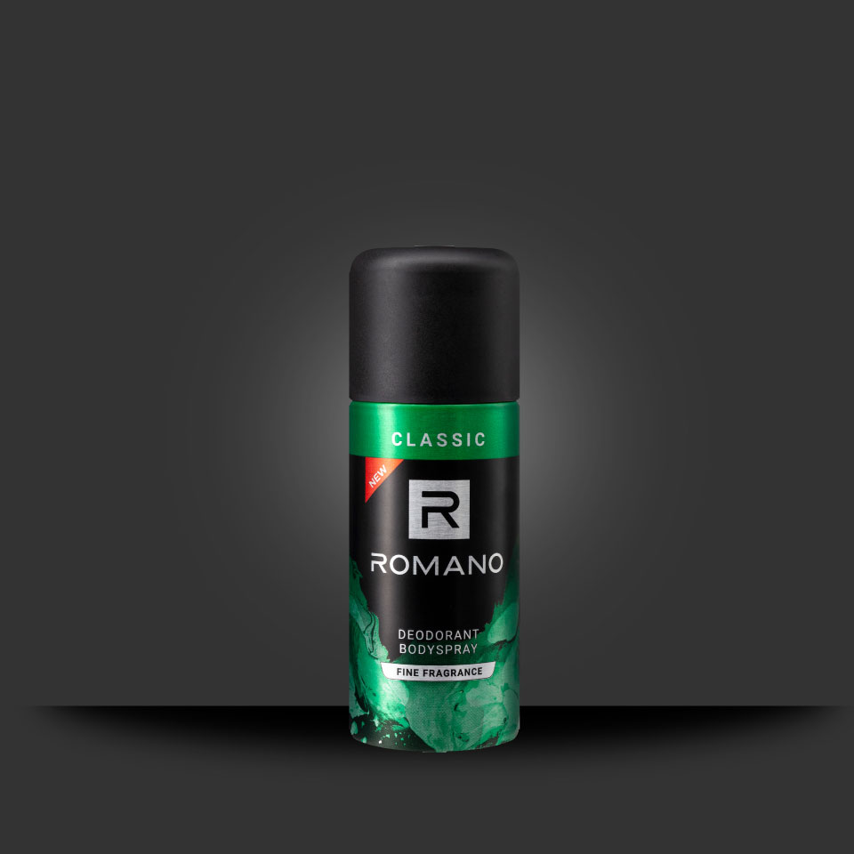 羅曼諾-爽身舶香體噴霧經典味香氣靈感來自義大利風格,廣藿香的清新與檀香的溫暖交融,彰顯了男子氣概和優雅的成功。